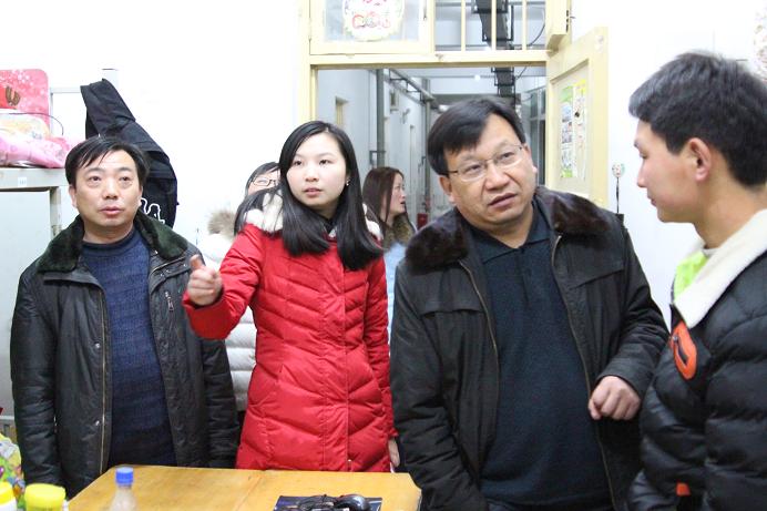 走进员工宿舍,师生亲切的话着家常,寝室里不时传来欢声笑语,洋溢着师生间的融融情谊。领导和老师们嘱咐“大家注意天气变化,注意防寒保暖。孙主任在临走前还特意叮嘱大家”、“要努力学习也要学会照顾自己,平时多给家里打打电话,问候一声,也报个平安。更要掌握与人交流沟通的能力,争取做一个全面发展的高素质人才!”