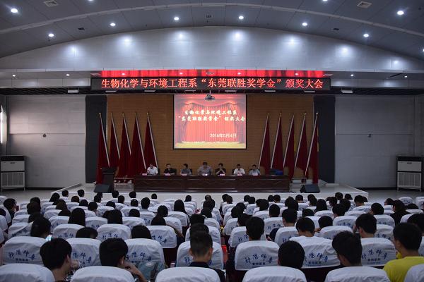 本网讯 通讯员唐传球、郭颖颖报道:5月4日晚18时15分,生物化学与环境工程系“东莞联胜奖学金”首次颁奖大会在学术报告厅召开,系党总支副书记唐传球主持。东莞联胜五金制品厂有限公司总经理杨万成、工程课课长颜...