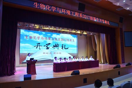 本网讯 通讯员周向宇报道:9月7日晚19:30生物化学与环境工程系2017级新生开学典礼在南风剧场圆满举行。系领导班子参加了本次典礼,参与典礼的还有公司机关兼职教授、专业教师及全体新生。 在郭颖颖老...