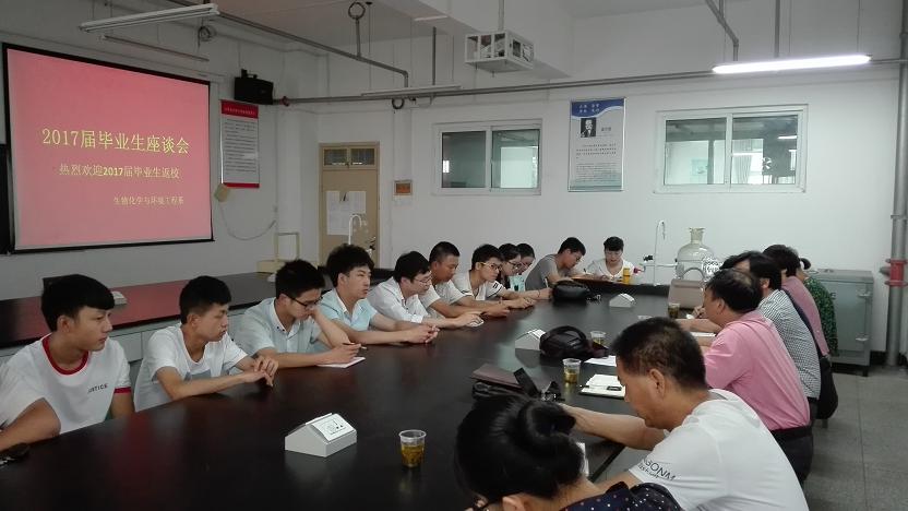 本网讯 通讯员龚双梅报道:6月14日上午9点,生化系毕业生座谈会在崇文楼A205举行。系领导班子、各教研室主任、实训室主任、辅导员与15位毕业生代表亲切座谈。 座谈开始之前,系党总支书记朱圣平首先代...