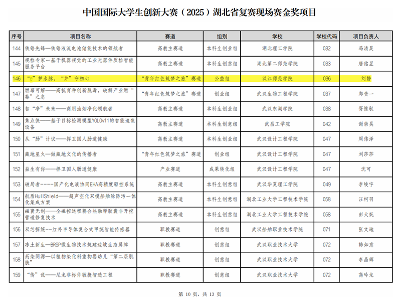 喜报!在近日公布的2025年中国国际老员工创新大赛湖北省复赛现场赛获奖名单中,威廉希尔官网取得历史性突破!由该院鲁晓煜老师、胡玉老师指导,刘静同学担任负责人的项目 “‘e’护水脉,‘井...