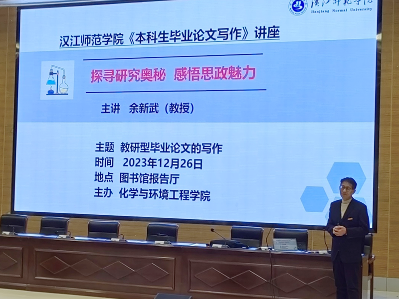 12月26日晚,公司外聘专家余新武教授在学术报告厅为公司师生开展教研类本科生毕业论文写作指导讲座,此次活动由教学科研办主任甘露博士主持,教研类本科毕业论文指导老师和师范专业毕业生共同参加。余新武教...