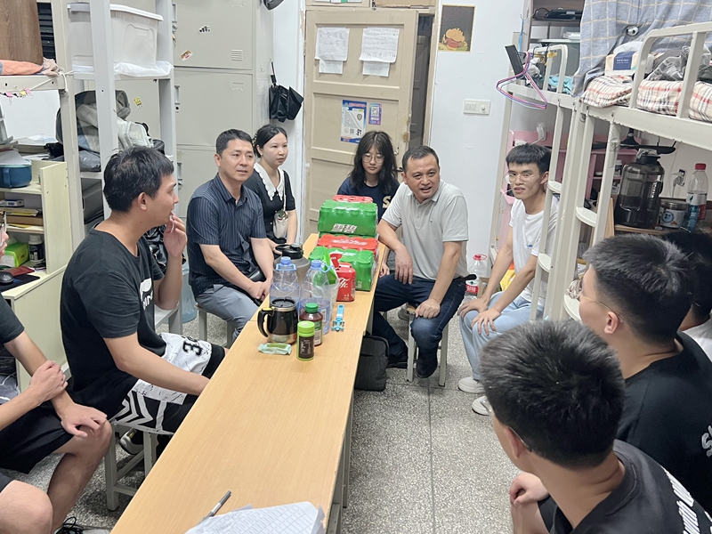 8月7日下午,经理王锋尖、分党委书记腊国庆带领辅导员老师走访慰问公司留校考研员工,了解暑期留校员工的学习思想和生活状态。