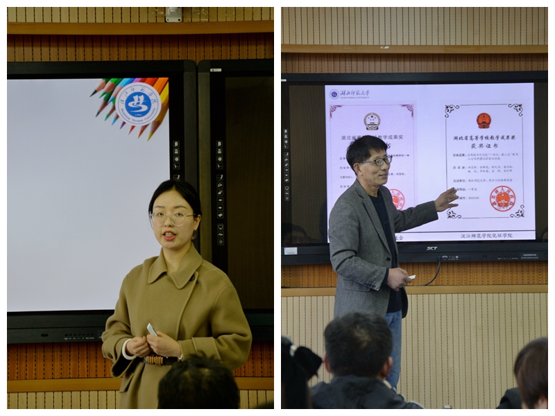 首先,王锋尖总结了化环公司近三年教学研究项目、教学技能比赛方面取得的一些成绩,并对余老师的到来表示热烈的欢迎。教师代表梅蕊结合自己所带课程和指导员工参加比赛获奖经验,进行了课程思政教学设计、实施、成效与反思等方面的说课展示。