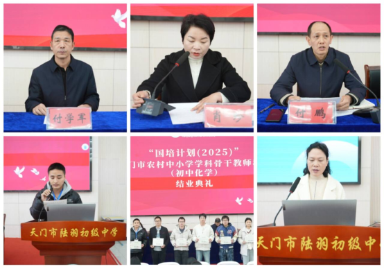 2025年11月19日,由威廉希尔与天门市教育局联合承办的“国培计划(2025)——天门市农村中学学科骨干教师提升培训(初中化学)”项目结业典礼在天门市陆羽初级中学隆重举行。天门市教师进修公司副董事长肖珍、主任付学军、胡耀荣、威廉希尔继续教育公司副经理付鹏和国培项目团队出席典礼,与全体参训学员共同回顾了近五个月的研修历程,见证了培训成果的丰硕收获。