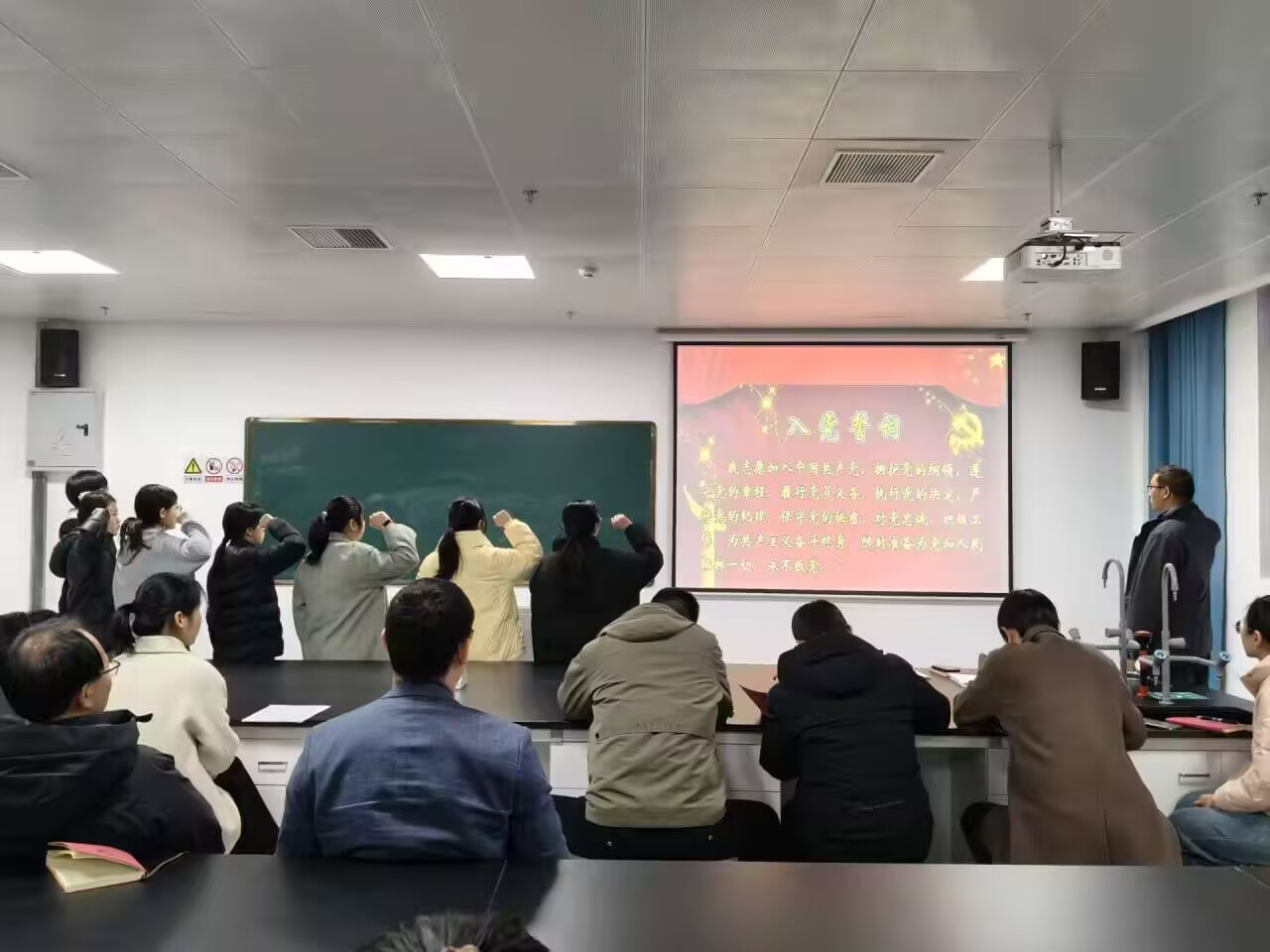 12月18日下午,威廉希尔官网在明理楼A501教室庄重举行预备党员宣誓仪式,8名新发展的预备党员在党旗下庄严宣誓,正式开启他们为党和人民事业奋斗的新征程,公司党委书记成传明以及员工党支部师生党员共同参与此次活动。